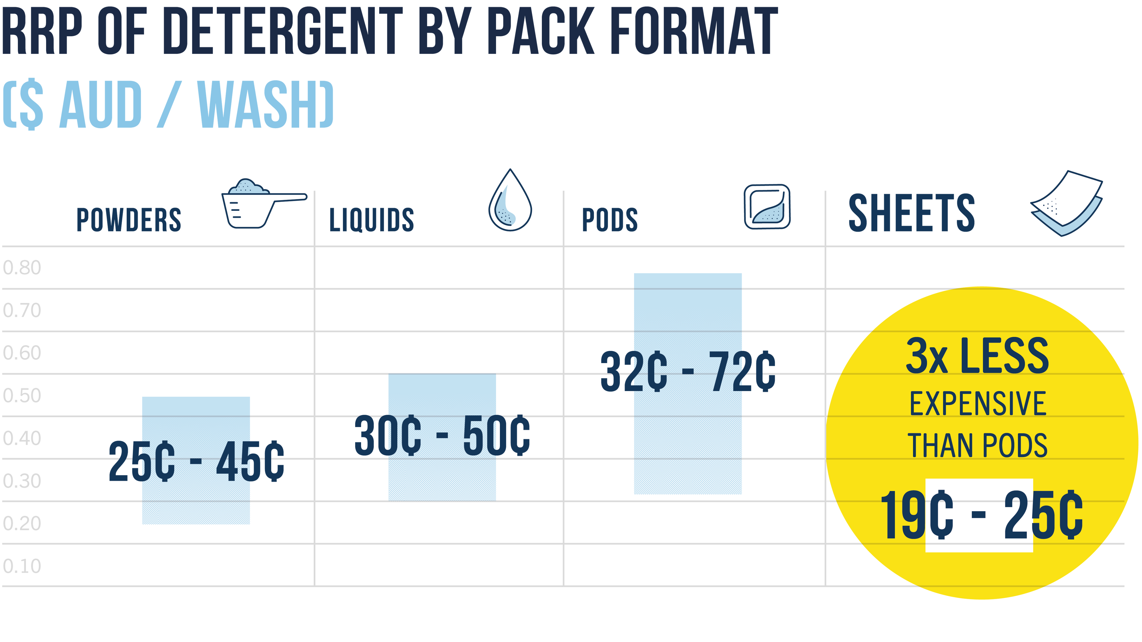 Just pre-measured, ultra-concentrated detergent sheets that work – every time.
